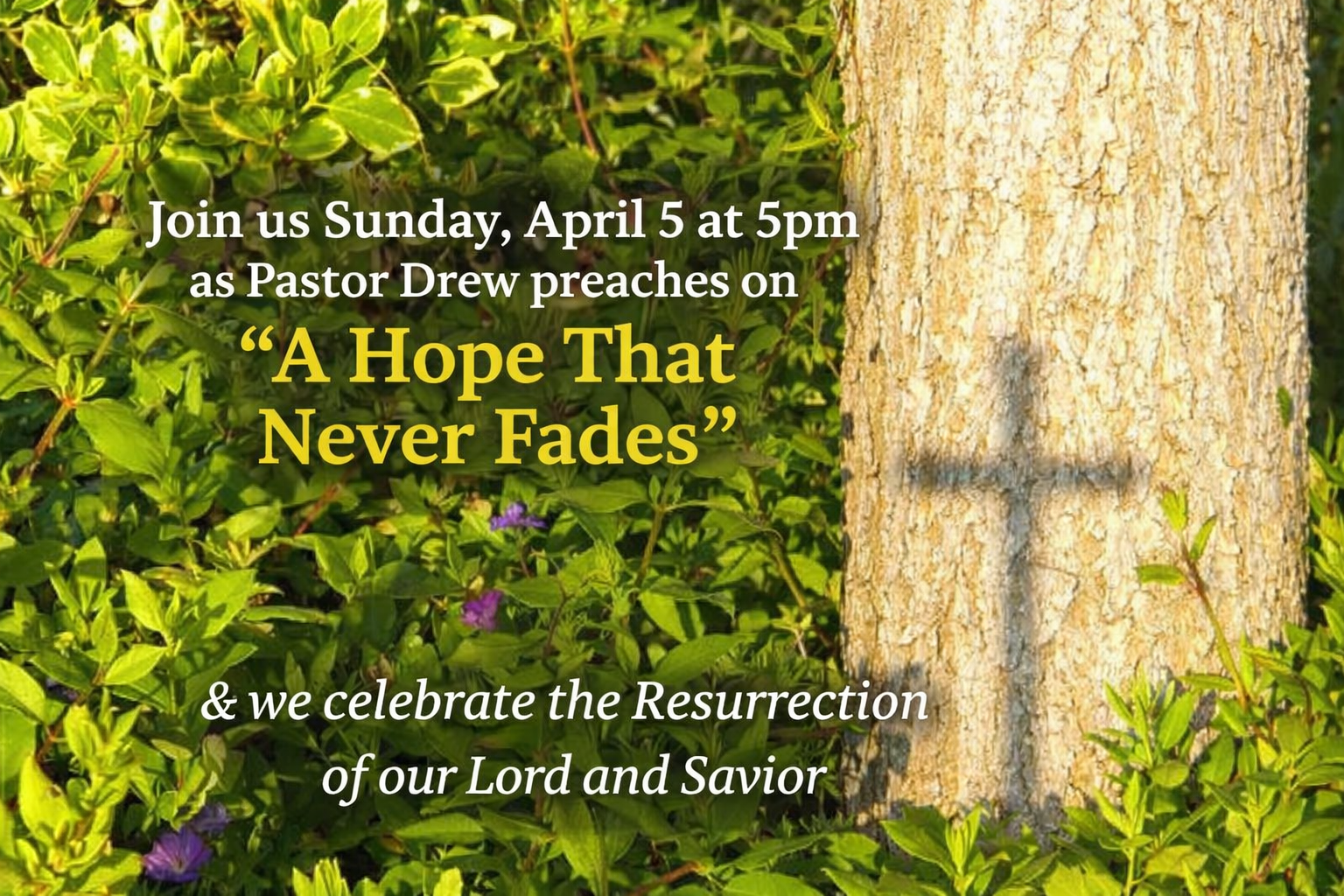 Sunday, April 5 Resurrection Sunday Service at 5pm. Ice Cream Social to follow.